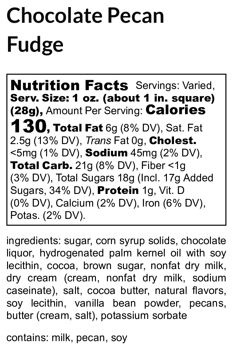 All of our fudge may contain trace amounts of nuts, milk proteins, gluten and peanuts that are used at our facility.