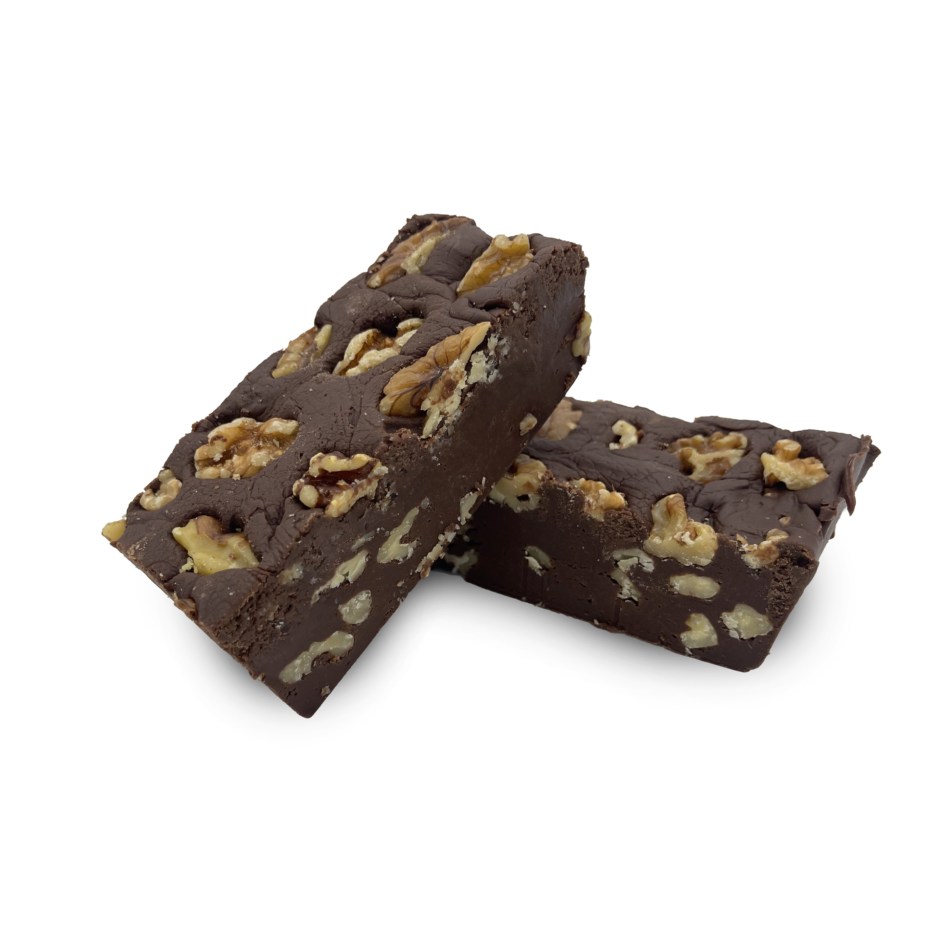 The total package for fudge perfection! Divinely satisfying, velvety, dark chocolate with chunks of crunchy walnuts. Old South Candy’s Dark Chocolate Walnut Fudge is a delicious fudge nutty goodness! Rich but not overly sweet and the walnuts add a fun, delicious texture to this creamy fudge. An ideal treat for both chocolate and nut lovers, Old South Candy’s Dark Chocolate Walnut Fudge pairs perfectly with a tall, cold glass of milk and is an excellent treat for a family picnic, kids birthday party, for a special occasion or just for fun!