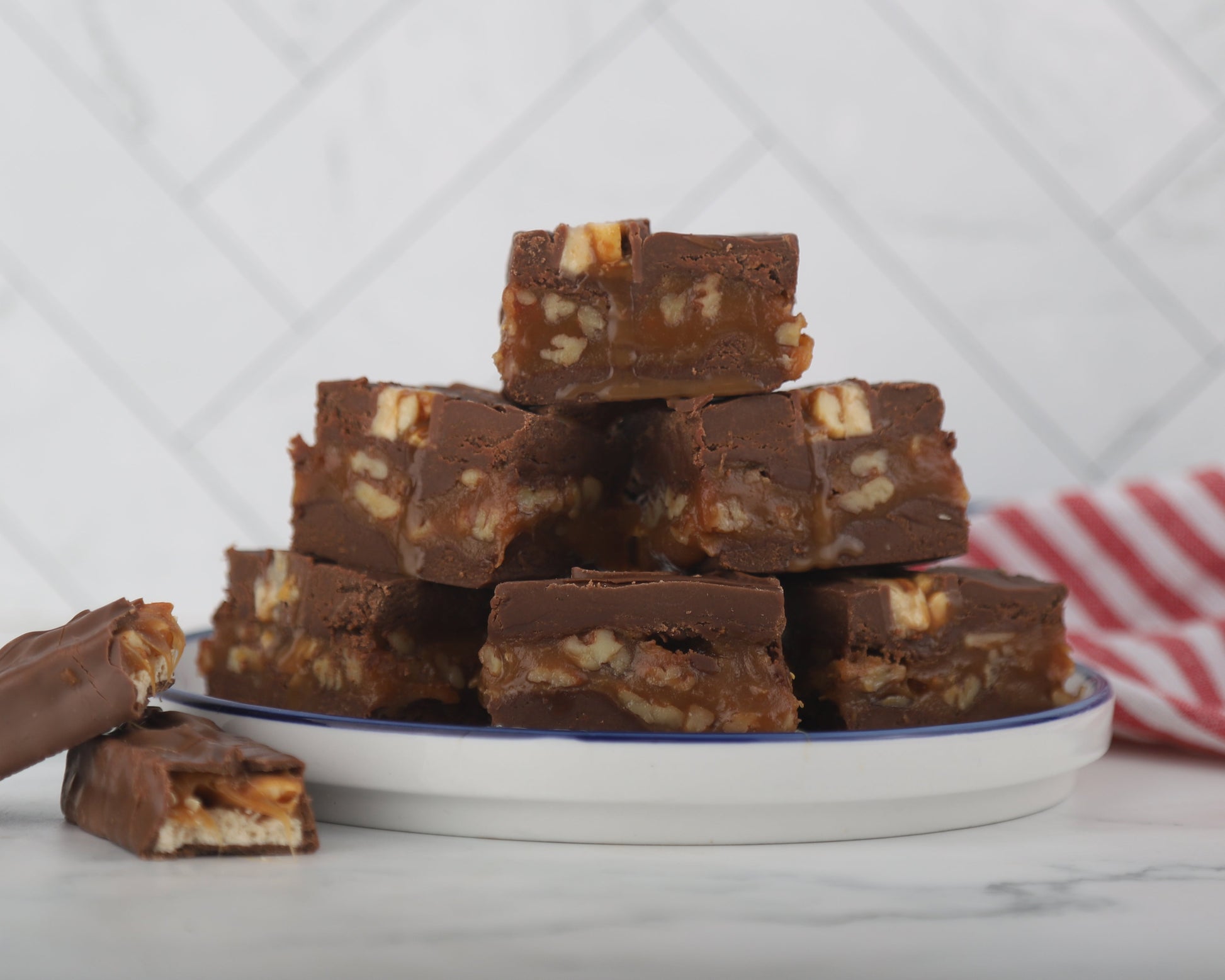 A heavenly treat that’s supremely delicious, here is the irresistible candy bar in fudge form! This creation combines the delightful flavors of glorious caramel, silky chocolate, and crunchy peanuts in one luscious treat that will blow your mind. Creamy and light, and tastes just like Snickers candy bar, this one even SOUNDS like a party; wait until you taste it! Beyond indulgent, these out-of-this-world rich, delectable layers are worth every single calorie!
