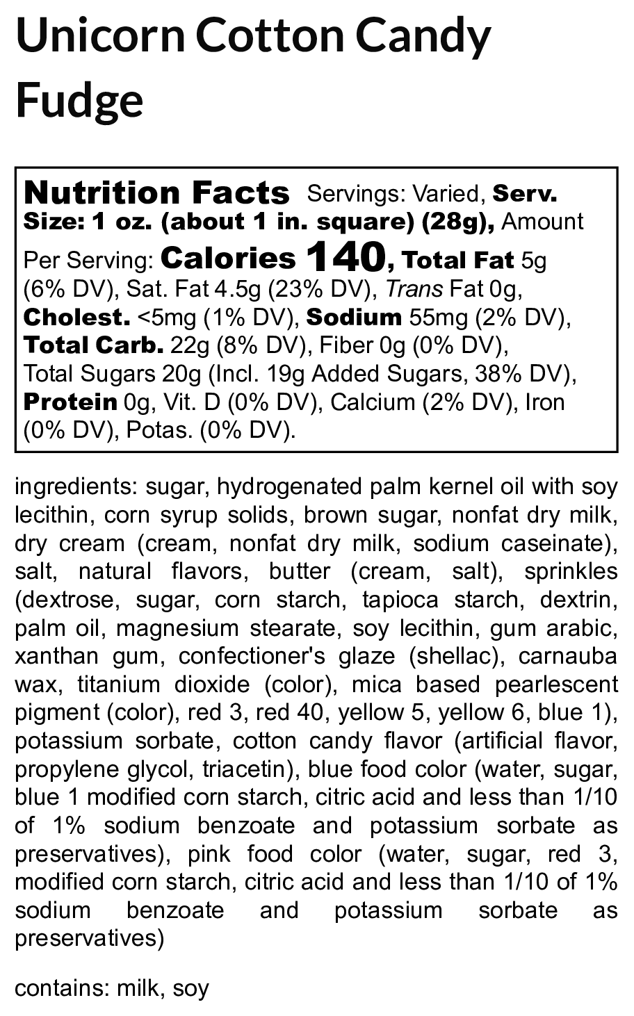 A NOTE TO CUSTOMERS - Unicorn Cotton Candy Fudge will vary in terms of sprinkles/sprinkle colors from time to time.
